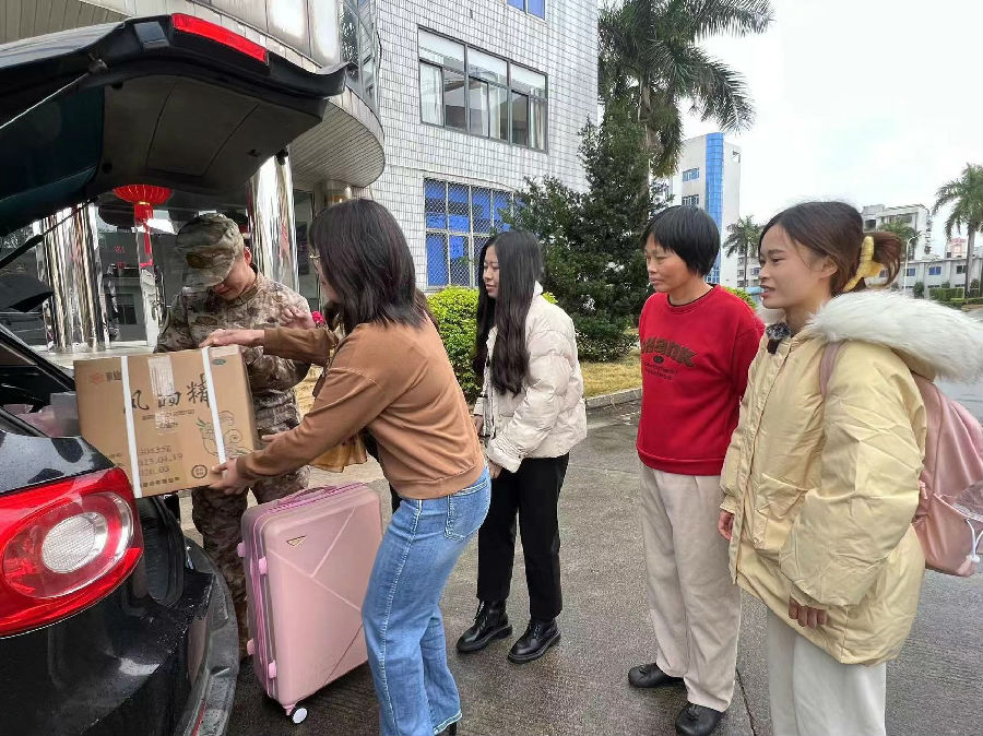 2024年2月6日,浙江某海島駐軍部隊(duì)同志到漳州水仙藥業(yè)股份有限公司慰問(wèn)軍屬郭蘇怡同志,并代表部隊(duì)邀請(qǐng)和接送郭蘇怡到部隊(duì)參觀和與愛(ài)人團(tuán)聚過(guò)新年。